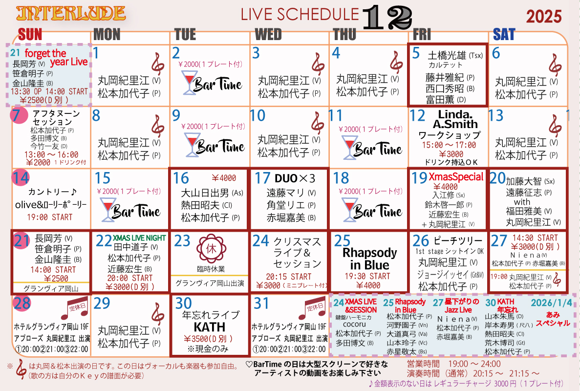 ※チャージはミュージシャンによって異なりますのでお問合せ下さい。