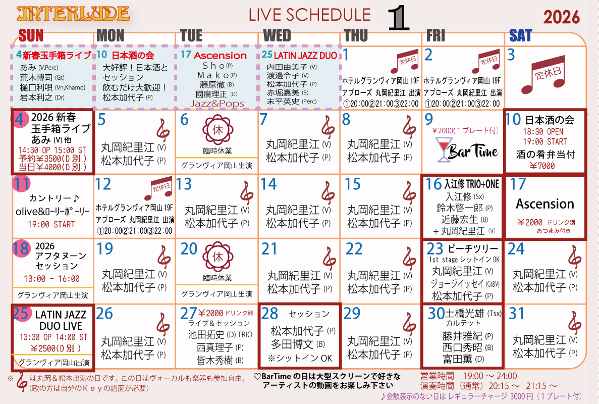 ※チャージはミュージシャンによって異なりますのでお問合せ下さい。