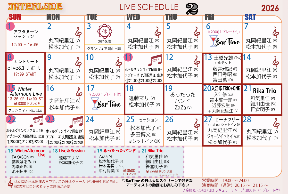 ※チャージはミュージシャンによって異なりますのでお問合せ下さい。